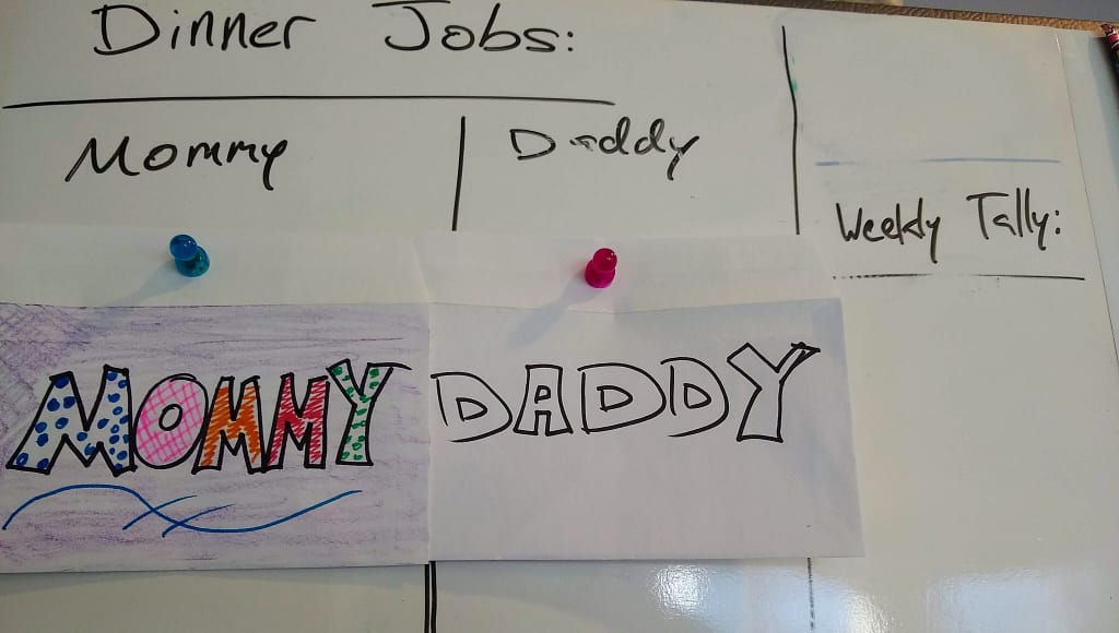 This is the harder part! In order for this to work, you’ll need to break down setting the table/clearing the table into many tiny tasks. At least 1 for each member of the family. Although this will vary based on each family’s needs, you can take a look at our jobs